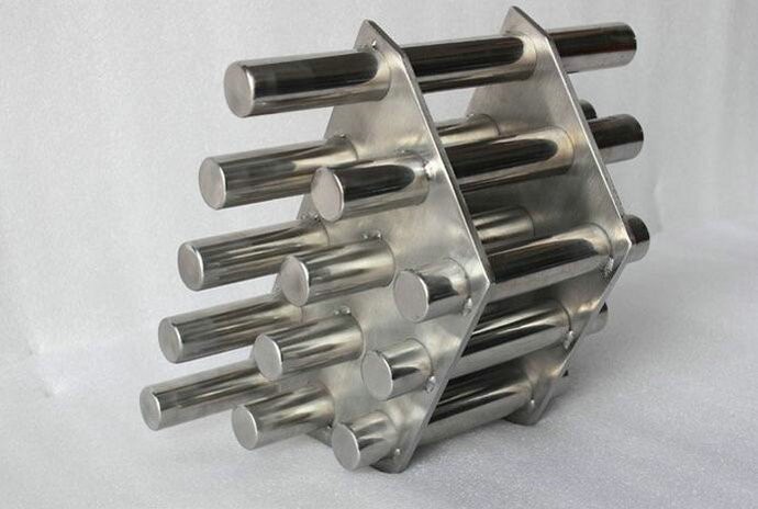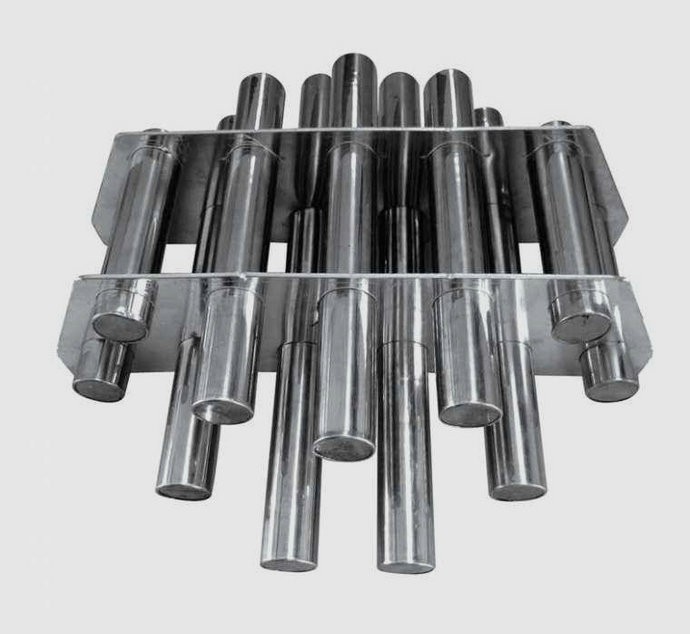 主要用于食品、精細化工等行業(yè),一般注塑行業(yè)使用多的是鐵氧體永磁材料制作的,表面磁場強度在2000高斯左右;而食品和精細化工行業(yè)用磁格柵,多用稀土釹鐵硼磁鐵制作,表面磁場強度在6000到12000高斯,相對鐵氧體磁格柵磁力要強很多,在使用過程,吸附鐵雜質(zhì)的粒度會更細小,抓附力會更強。